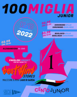 La Centomiglia andrà in scena quest’anno, con una formula del tutto nuova. Si inizierà con i giovani e la prima Cento Junior. Si passerà poi alla gara in due tappe per la 72a Centomiglia. Sabato si andrà a Nord con in palio il trofeo Gorla, la Cento nell’alto lago: le barche navigheranno da Bogliaco verso l’alto Benàco, e ritorno; domenica invece a Sud con il Trofeo Bettoni, parte bassa del lago: si andrà a Sud partendo da Gargnano, entrambe le gare partenza alle 8.30. La Centomiglia assegnerà la vittoria con la somma dei tempi. Le due Regate vedono coinvolte barche volanti e multiscafi.